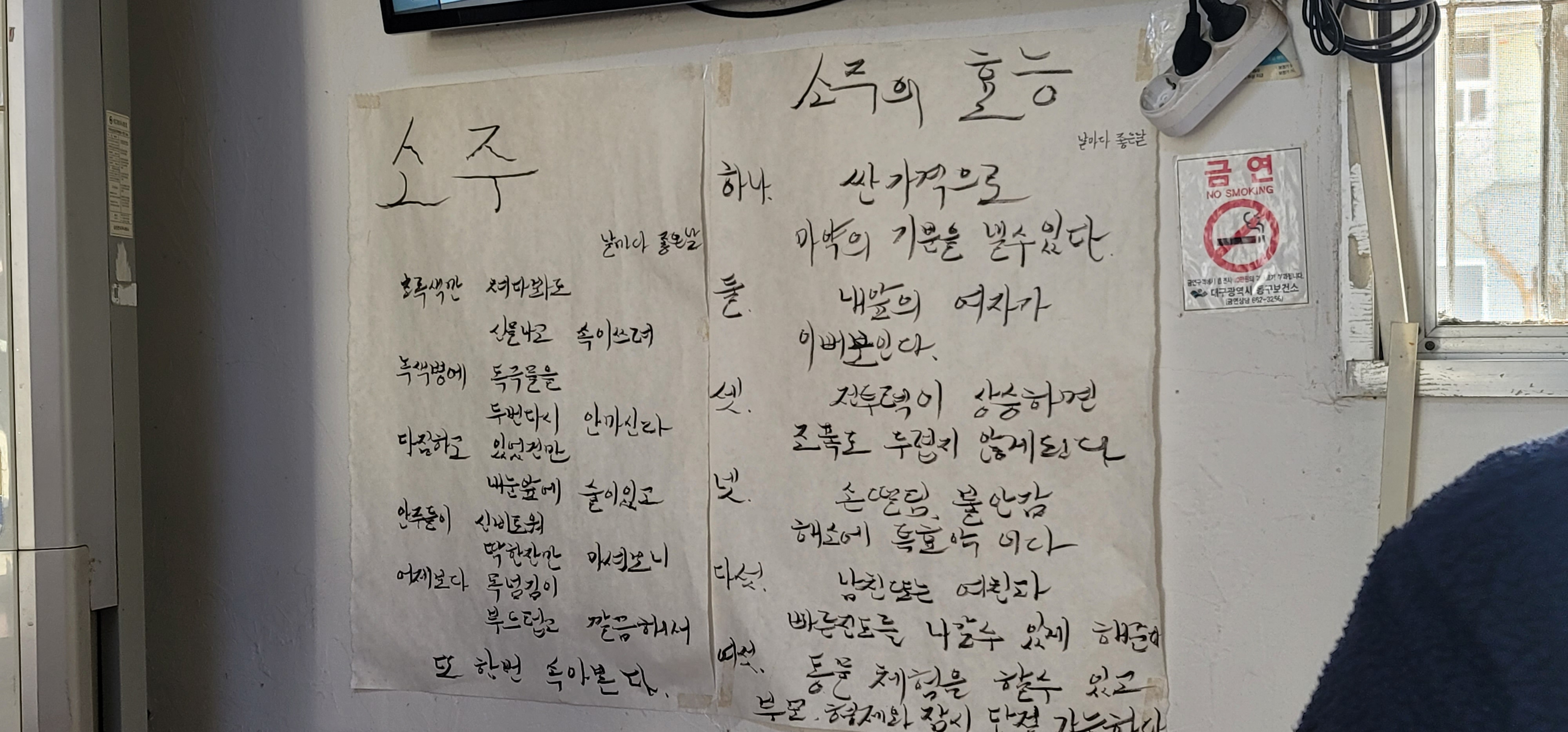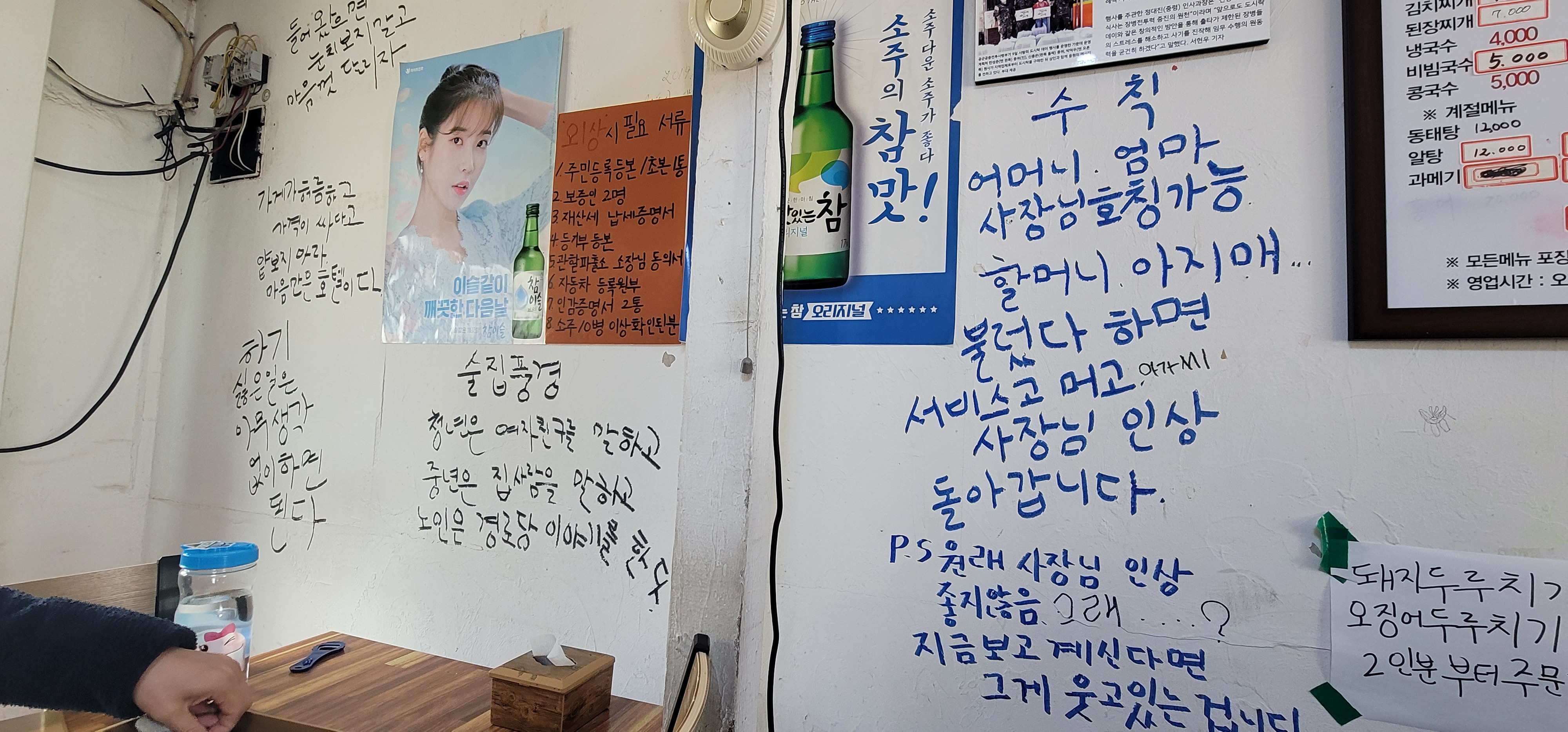 맛있게 먹으며 또 벽에 붙은 시 한절 보고 갈게요