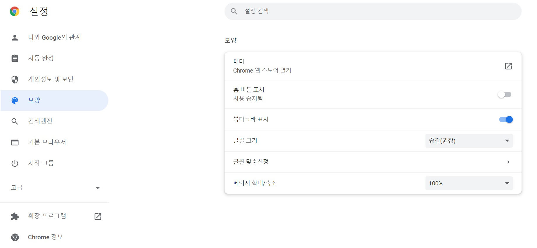 2. 모양-테마 chrome 웹스토어 열기를 클릭해주세요